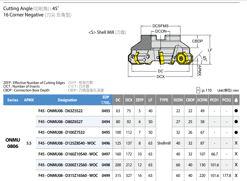 | 1 | F45-ONMU08-D63Z5S22 | 63X22X40(5F)/ONMU0806 |